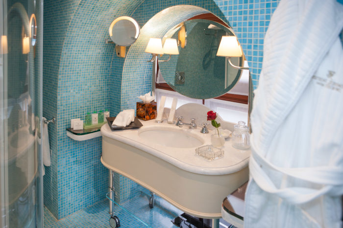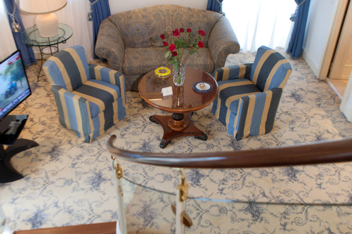 This exceptional suite of 79 m² is designed in romantic blue nuances and spans two levels, each offering stunning, uninterrupted views across the Aegean.